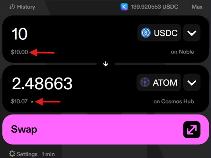 * **Outcome / What to Expect**: The user's newly purchased destination asset tokens will be transferred to their address on the swap chain. (This is the address passed to `chains_to_addresses` in `/fungible/msgs` for the chain where the swap takes place, which is given by `swap_venue.chain_id` in the response from `/fungible/route`)